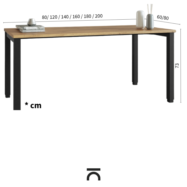- Aus Melamin gefertigte Tischplatte zu 25 mm mit abgerundeten Ecken zu 2 mm für viel Komfort bei der Arbeit dank der Widerstandskraft des Materials und seiner sorgfältigen Verarbeitung.